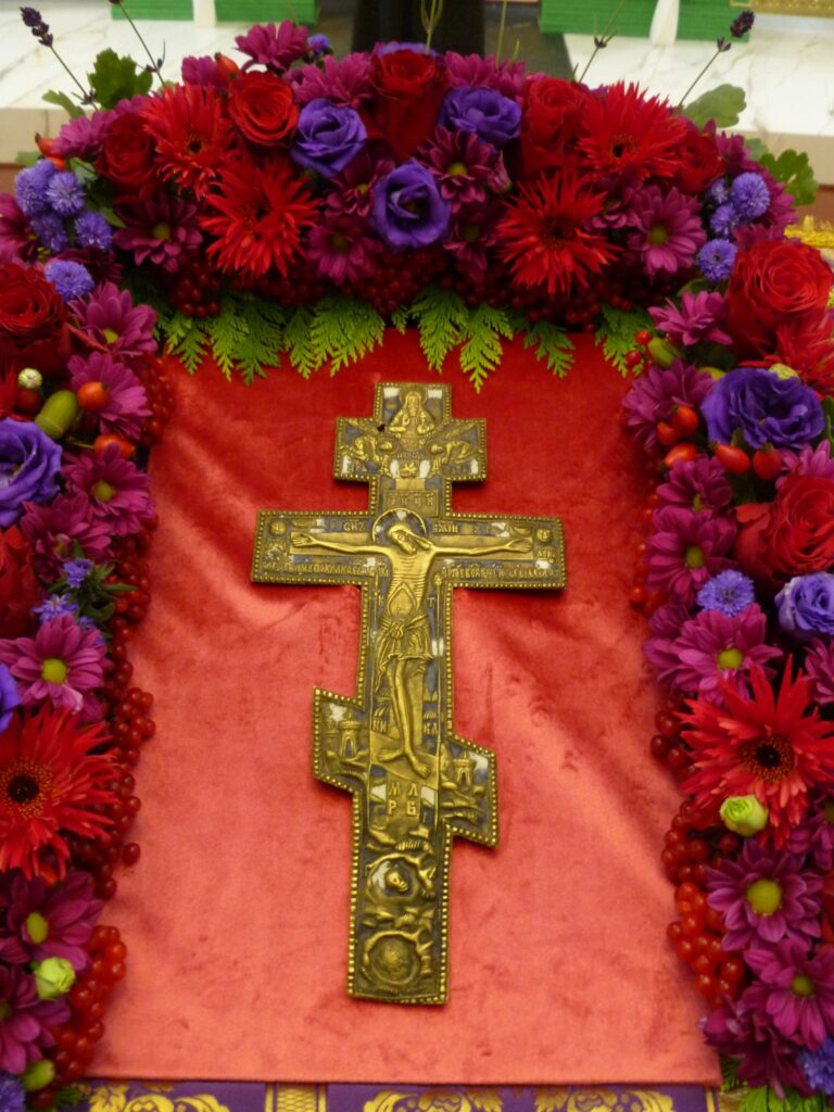 Рождение Богоматери, праздновавшееся шестью днями ранее, – преддверие тайны воплощения Бога на земле, а Крест возвещает о Его будущей жертве. Поэтому праздник Креста тоже стоит в начале церковного года (14/27 сентября)