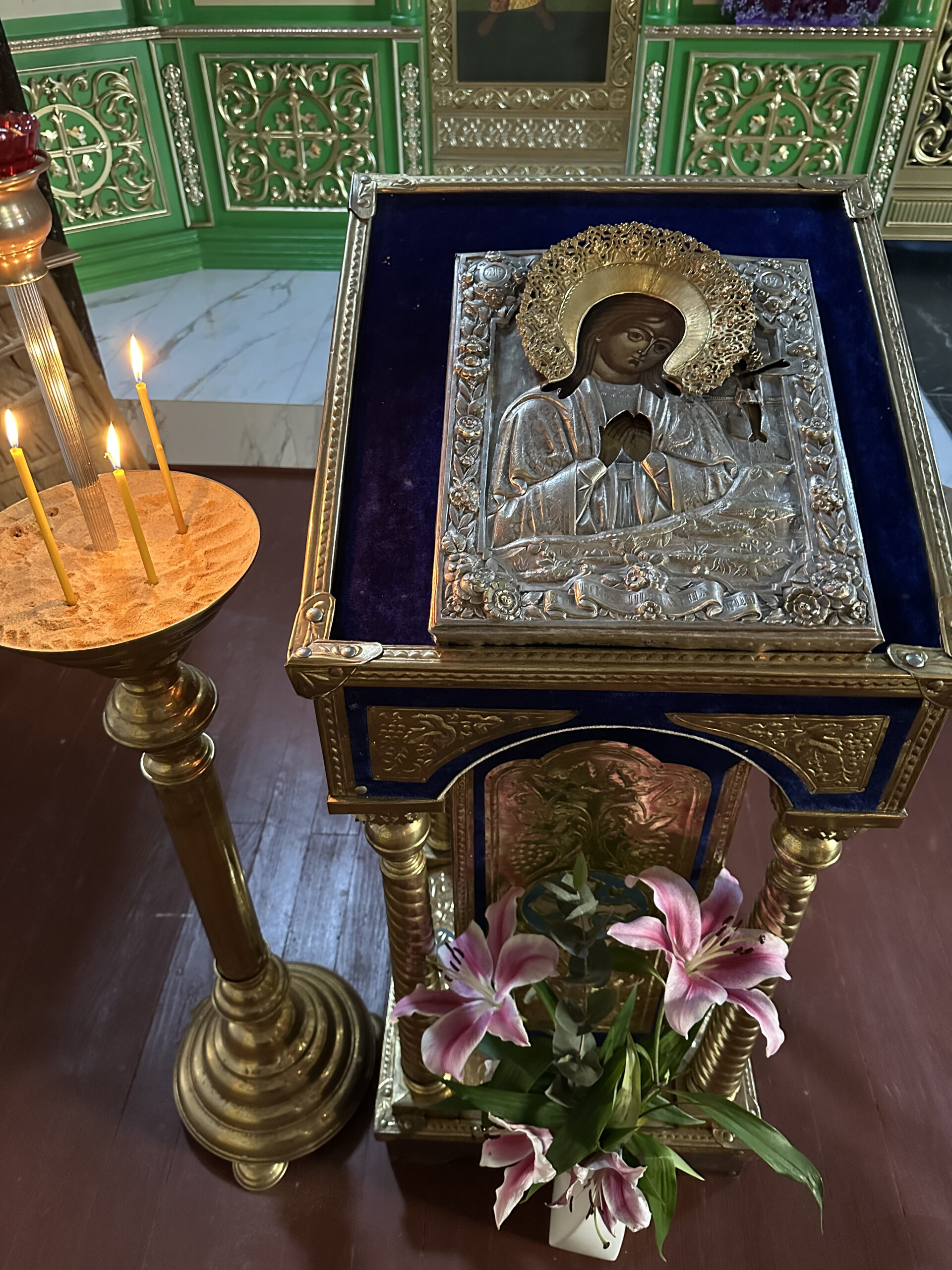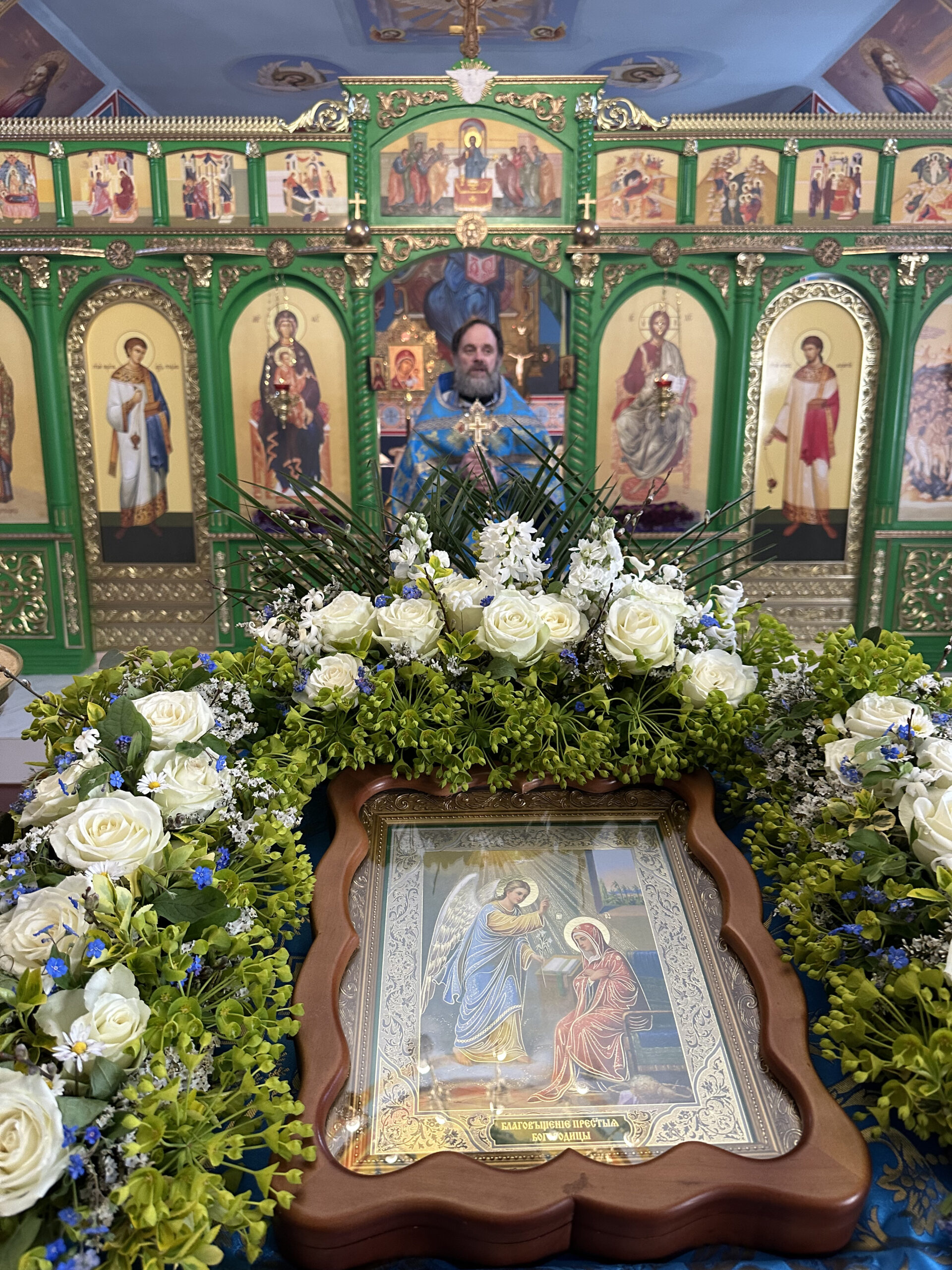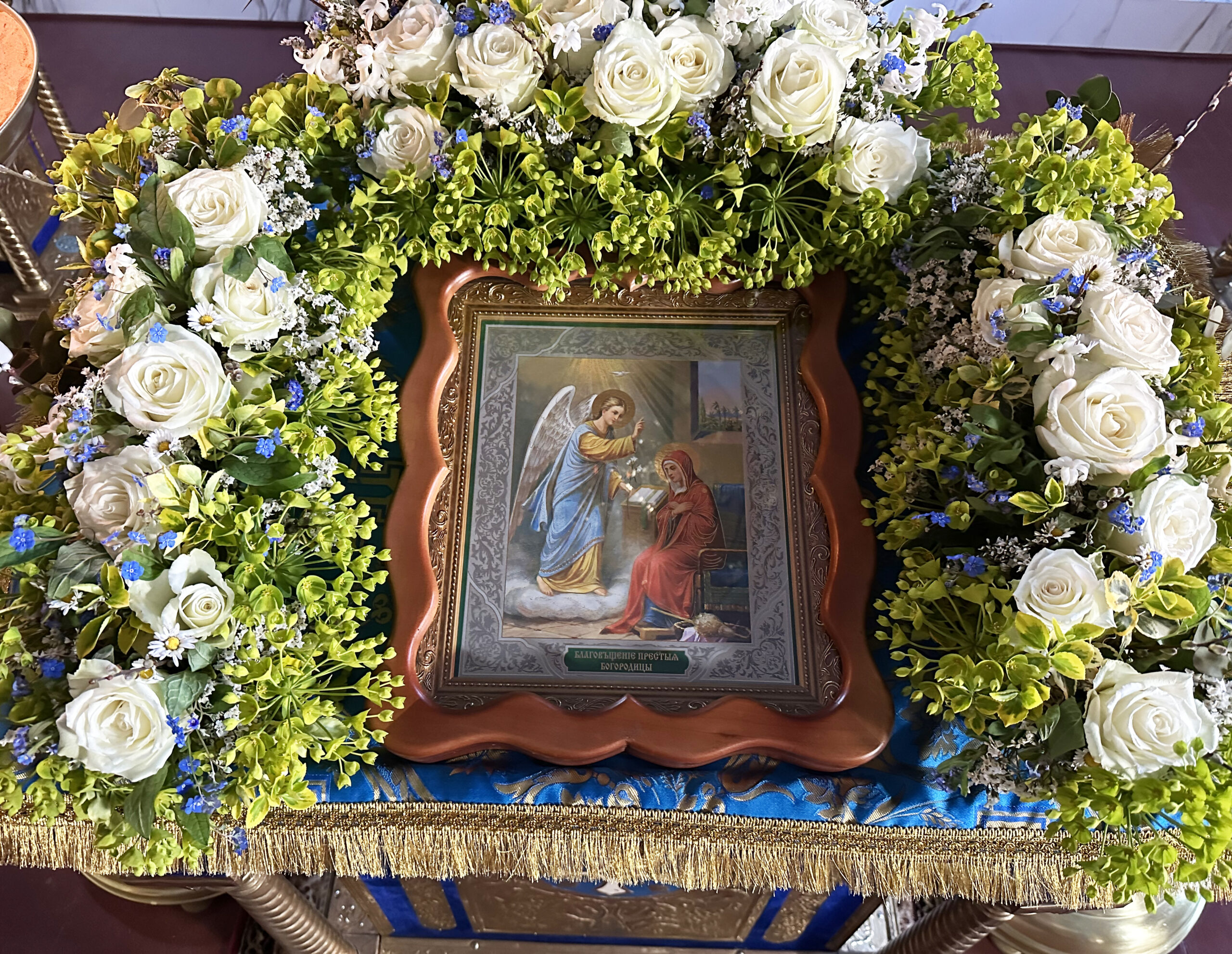 Благовещение символизирует начало нашего спасения. Поэтому Церковь Божия изображает эту икону на царских вратах, которые есть вход в Царство Небесное.